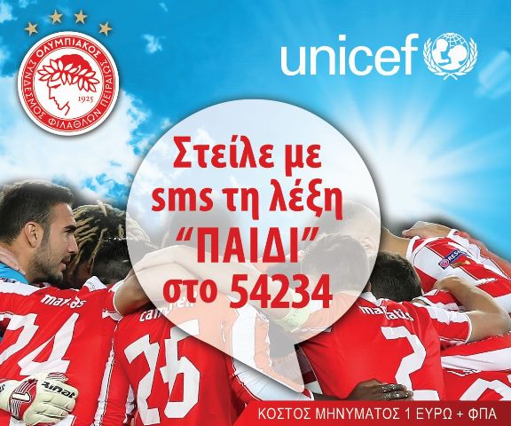 Ο Ολυμπιακός στηρίζει έμπρακτα τη δράση της UNICEF, συμμετέχοντας ενεργά στην πρωτοβουλία με SMS για το παιδί.
