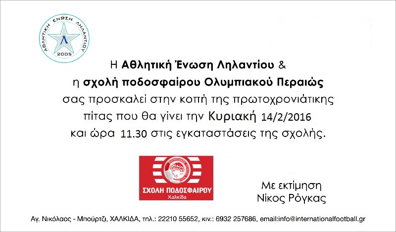 ΚΥΡΙΑΚΗ 14/2 ΚΟΠΗ ΠΡΩΤΟΧΡΟΝΙΑΤΙΚΗΣ ΠΙΤΑΣ Α.Ε.Λ. κ΄ ΣΧΟΛΗΣ