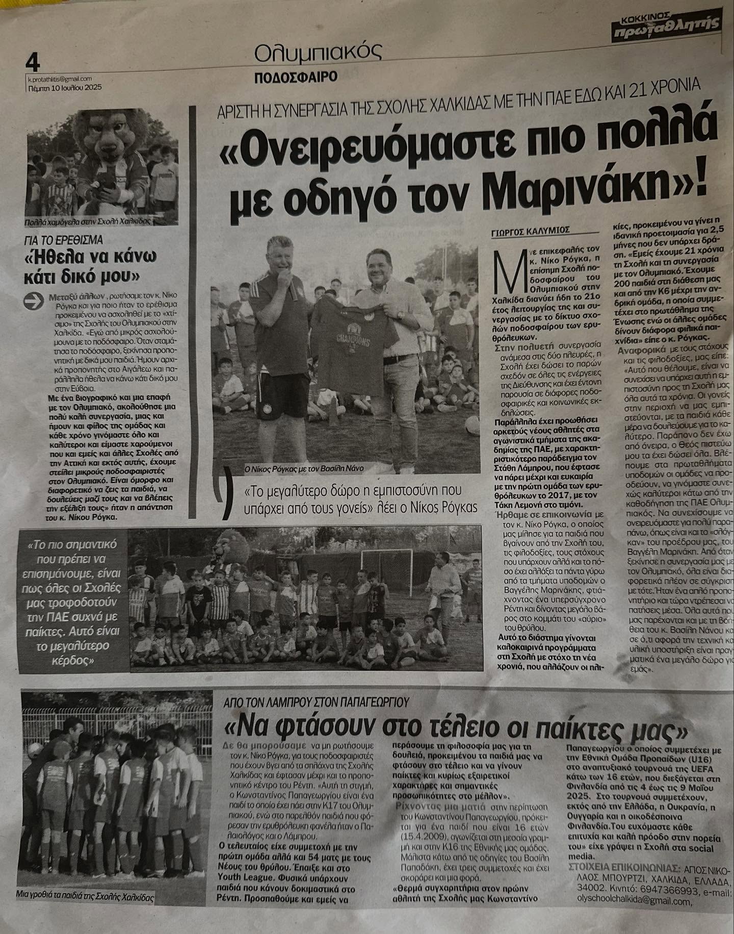🔴⚪️Θα θέλαμε να ευχαριστήσουμε θερμά την εφημερίδα «Πρωταθλητής» για το όμορφο και προσεγμένο αφιέρωμα στη σχολή μας. 👉Η αναγνώριση του έργου μας και της προσπάθειας που καταβάλλουμε καθημερινά αποτελεί τιμή για εμάς και ταυτόχρονα κίνητρο για να συνεχίσουμε με την ίδια συνέπεια και αφοσίωση🦁⚽️🥅