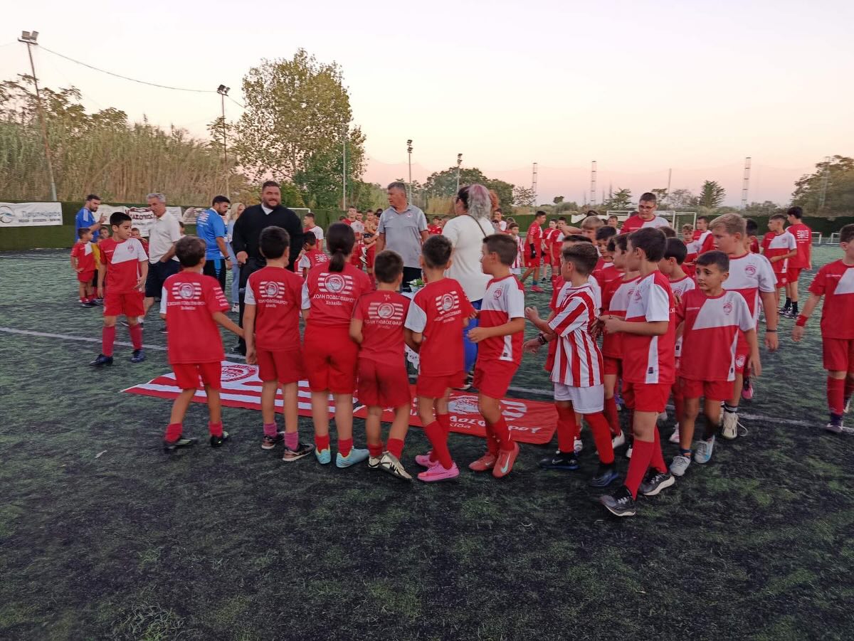 οι ποδοσφαιριστές της ομάδας, και οι μικροί μαθητές της σχολής με τούς