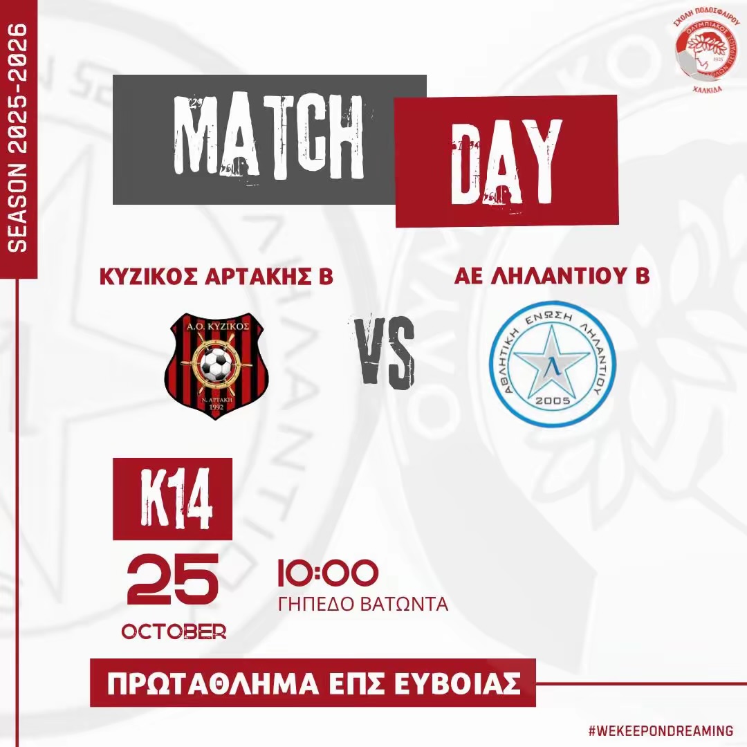 25/10 ΑΓΩΝΑΣ ΠΡΩΤΑΘΛΗΜΑΤΟΣ Κ 14 ΑΛΕΞΑΝΔΡΗΣ ΧΑΡΙΛΑΟΣ ΚΥΖΙΚΟΣ ΑΡΤΑΚΗΣ Β - ΑΕ ΛΗΛΑΝΤΙΟΥ 1-0