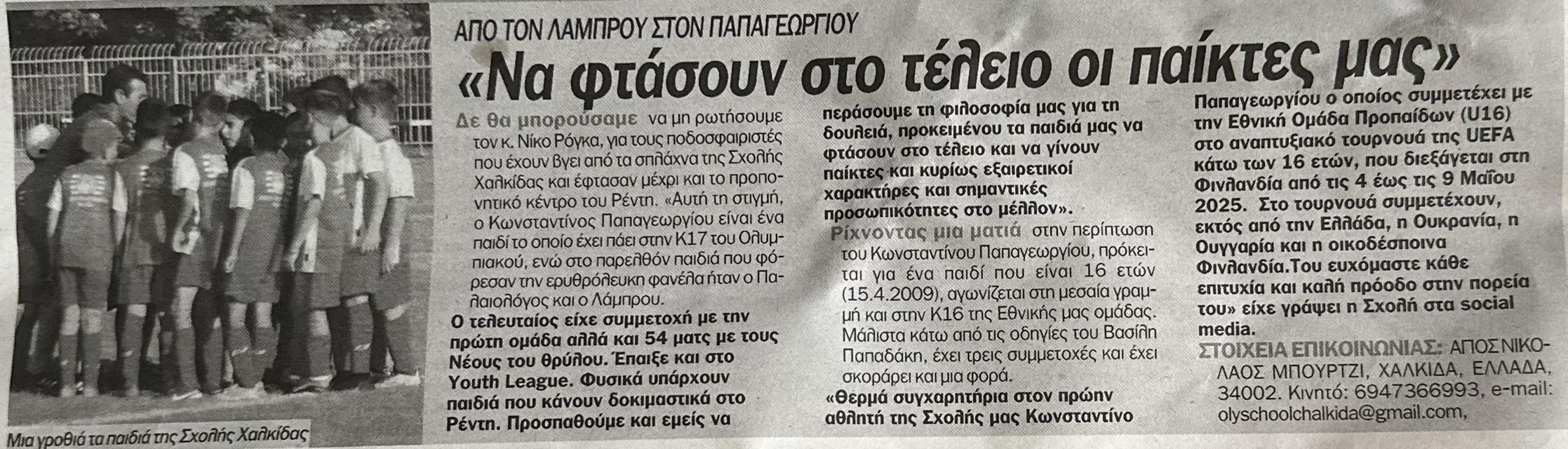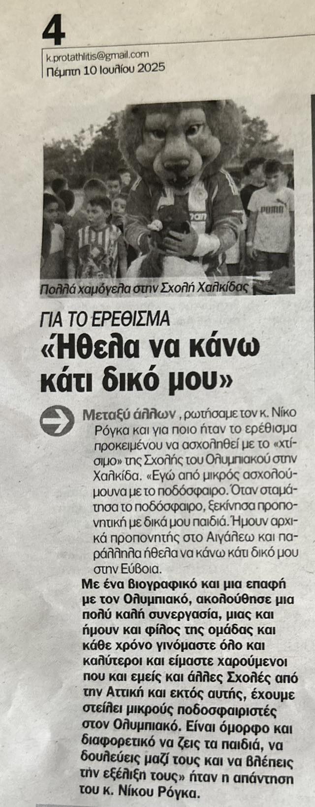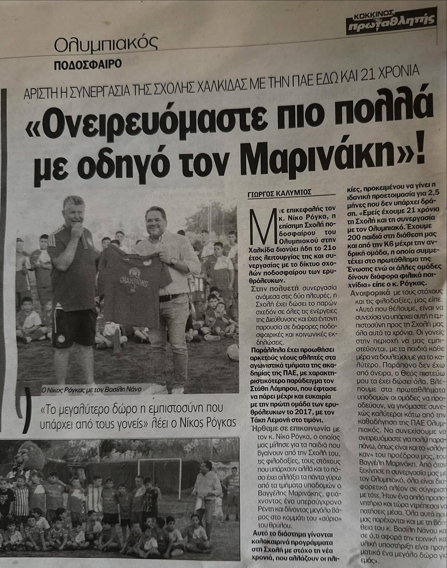 🔴⚪️Θα θέλαμε να ευχαριστήσουμε θερμά την εφημερίδα «Πρωταθλητής» για το όμορφο και προσεγμένο αφιέρωμα στη σχολή μας. 👉Η αναγνώριση του έργου μας και της προσπάθειας που καταβάλλουμε καθημερινά αποτελεί τιμή για εμάς και ταυτόχρονα κίνητρο για να συνεχίσουμε με την ίδια συνέπεια και αφοσίωση🦁⚽️🥅