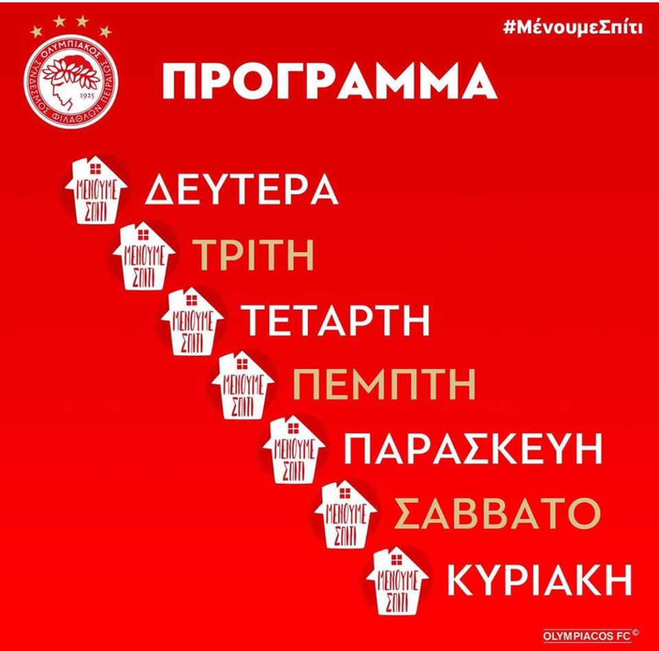 #ΜένουμεΣπίτι 🏡🗓#StayAtHome 🏡🗓#Olympiacos #GoodMorning #Μένουμε_Σπίτι #Schedule#BeSaf